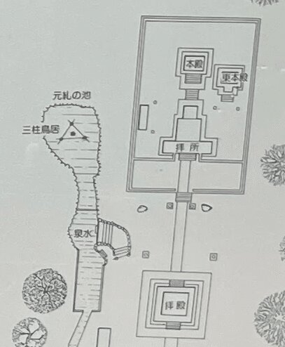 境内の説明と由緒の写真も貼っておく。由緒は「アマテラスの暗号」に載っていた画像と同じものだった。 境内の説明の要点は以下。