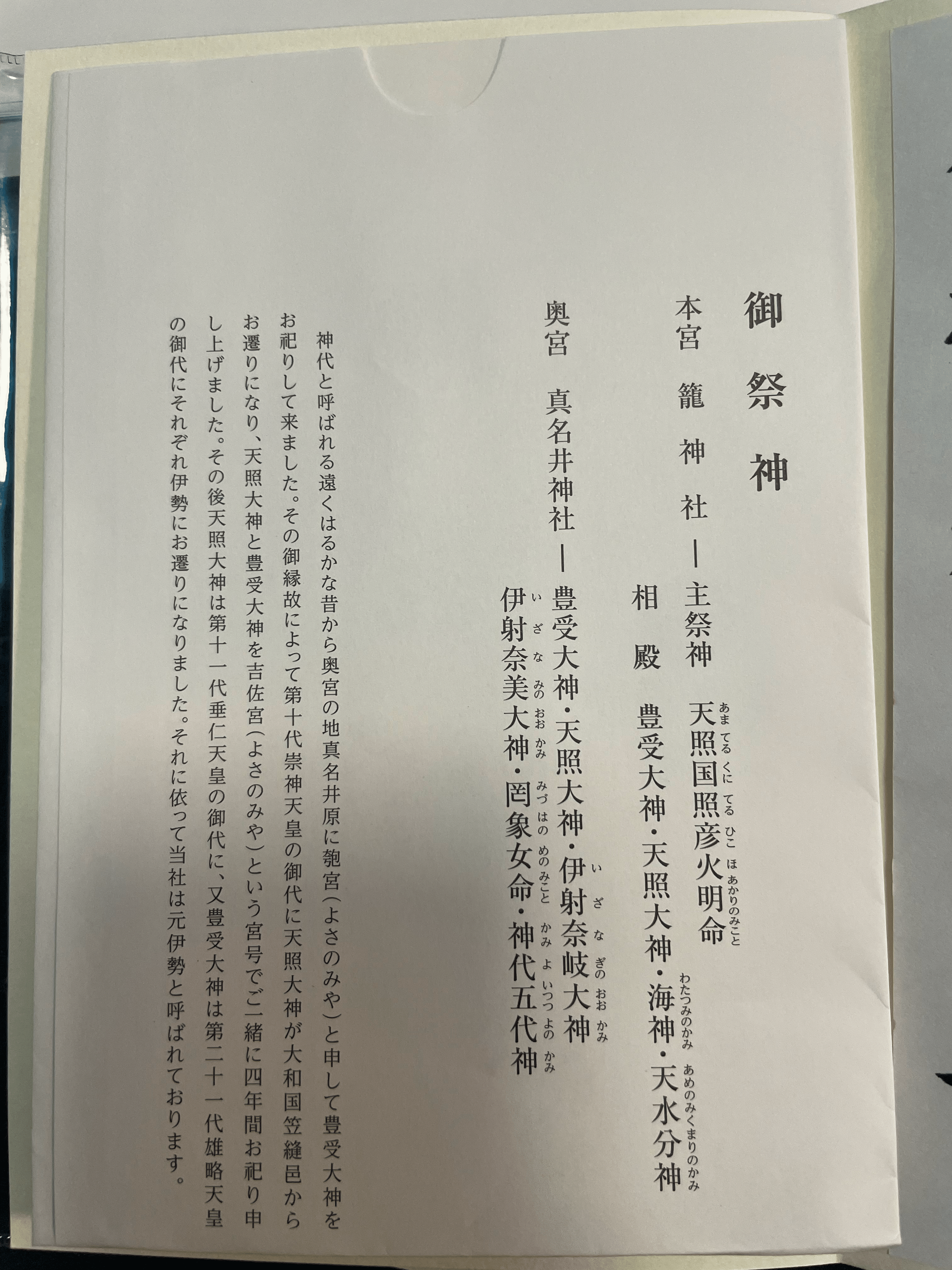 - 神代と呼ばれる時代から奥宮の地,真名井原にて匏(よさのみや)という名前で豊受大神を祀っていた。