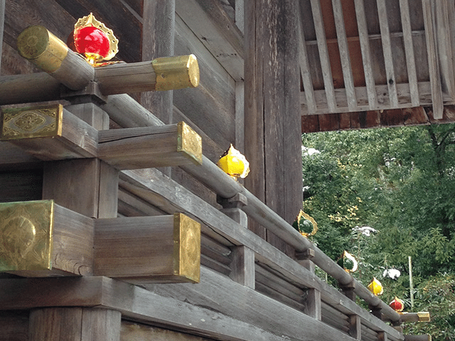 - 籠神社の社殿は最も伊勢神宮の正殿に近いと言われ,高欄に「五色の座玉(すえたま)」が配されているのも伊勢神宮と籠神社しかない。