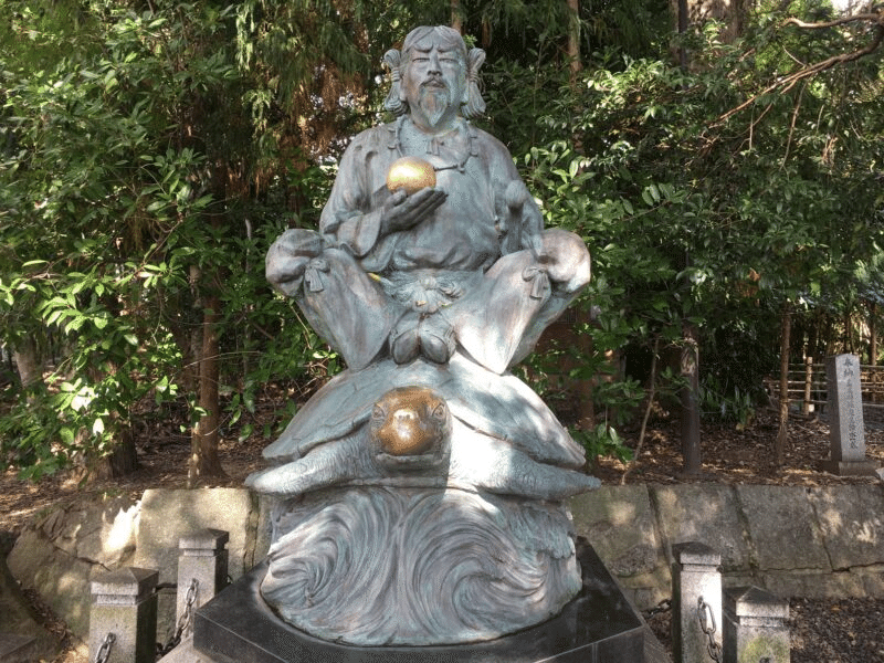 [!NOTE] 8世紀までは主祭神は彦火火出見尊(ホホデミ)であり,神武天皇の祖父に当たる。 ホホデミには曲玉を口に含んで壺の中に吐き入れると曲玉が壺にくっついたというエピソードがある。