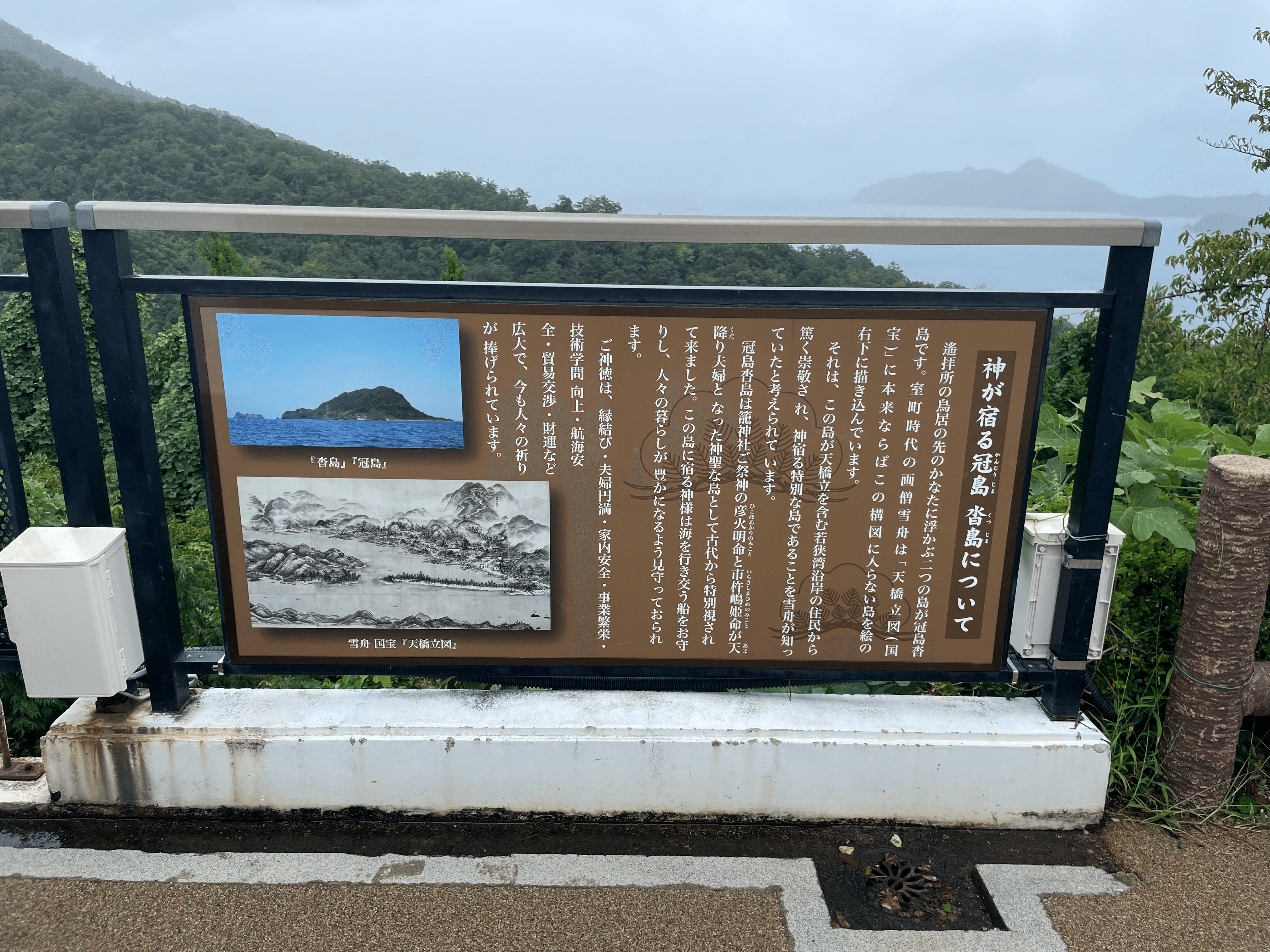 籠神社からロープウェイで行くことができる遥拝所。ここからは伊勢湾を一望でき,天橋立も見ることができる。